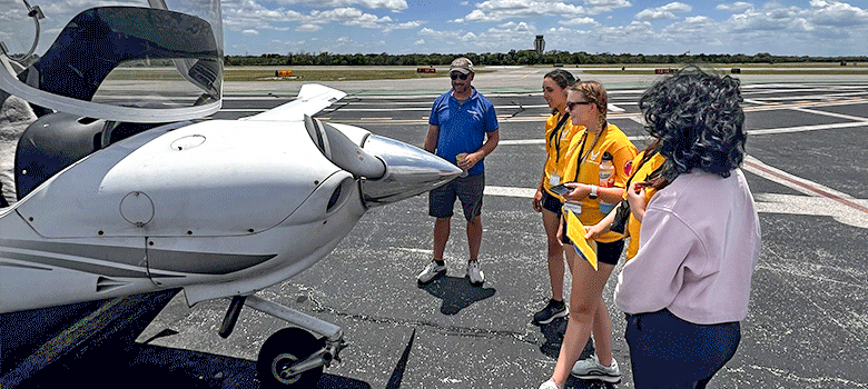JULY 16, 2024 — UTSA is hosting a dozen students who are enrolled in a free Air Force-sponsored program that inspires young people to explore careers in aviation. The AIM High Flight Academy offers students a chance to receive personalized training from the U.S. Air Force and certified flight instructors.