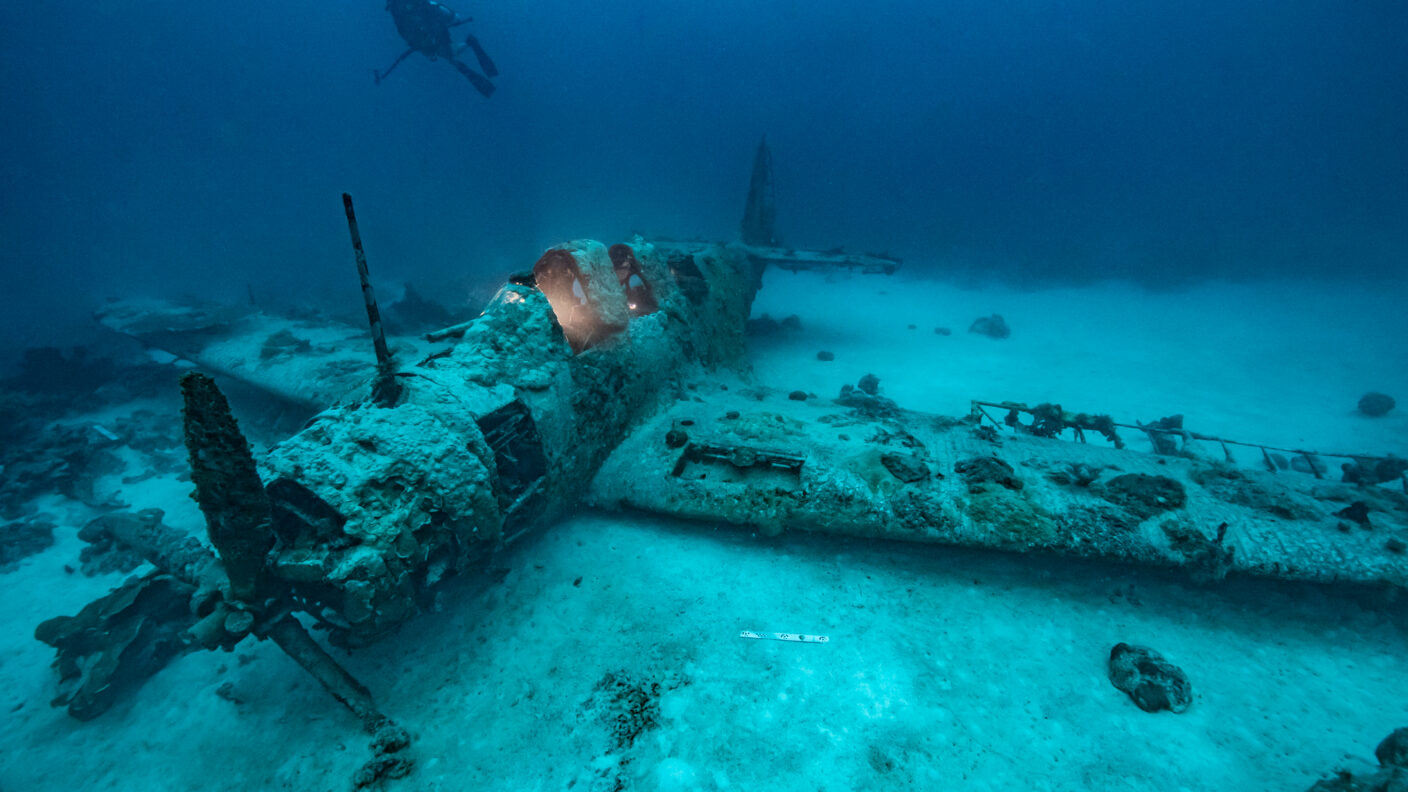 The Douglas TBD-1 Devastator rests on the ocean floor near Jaluit Atoll. Texas A&M researchers are working to recover and preserve this rare World War II aircraft for future generations. Photo Credit: Air and Sea Heritage Foundation